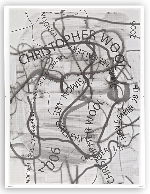 1- Christopher Wool, Untitled, 2007, silkscreen ink on paper, 182.9 x 243.8 cm. © Christopher Wool 2- Christopher Wool, Untitled, 2007, silkscreen ink on paper, 182.9 x 243.8 cm. © Christopher Wool 3- Christopher Wool, Untitled, 2007, silkscreen ink on paper, 182.9 x 243.8 cm. © Christopher Wool