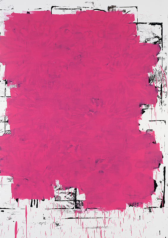 Wool’s paintings quickly attain a mature aesthetic understanding, reaching monochrome, pure painterly abstractions. Dense and layered surfaces emerge as closed psychic spaces created through simultaneous interventions. These monochrome abstractions must inevitably be viewed in terms of the dynamism of the paint movements. However, it would be more accurate to describe them as contradictory internal interpretations developed around the idea of order and chaos, resisting the urge towards parody, beyond a modernist interpretation. […] Wool generally adopts an attitude of working with abstract forms, directing or renewing the expressive potential of painting through strategies of duplication, erasure and manipulation. His paintings that most clearly demonstrate this scope are actually (and always) an aesthetic element that reverses the sequence of images, shaped by expressionless repetitions or collaged with different elements.